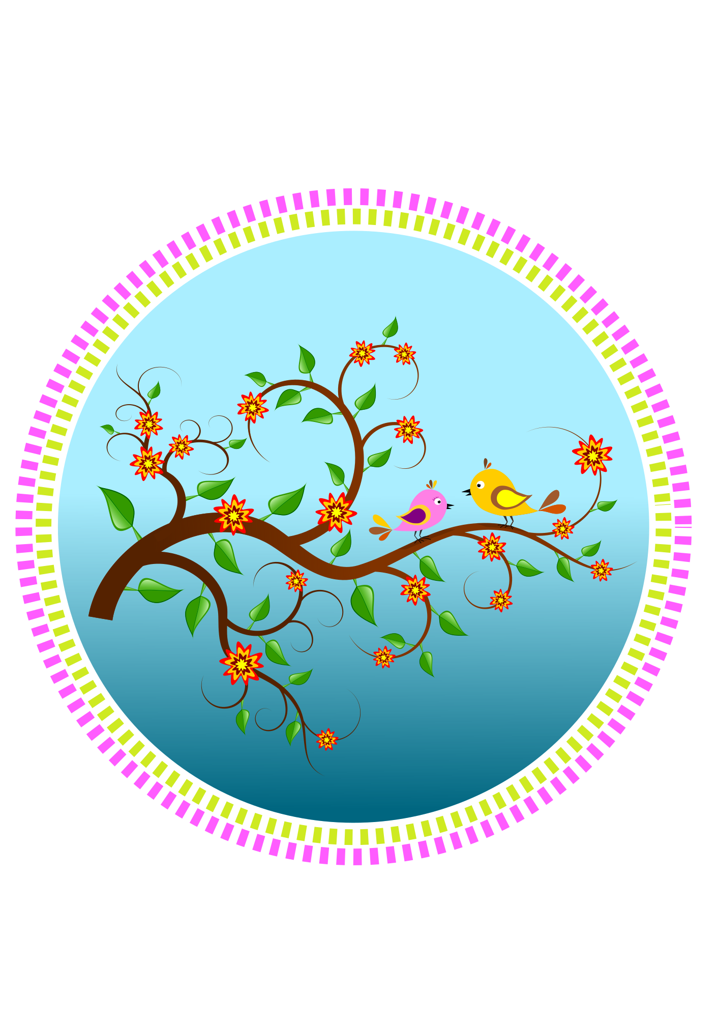Birds on a branch with flowers