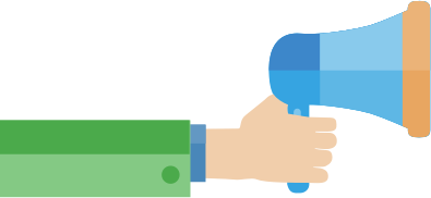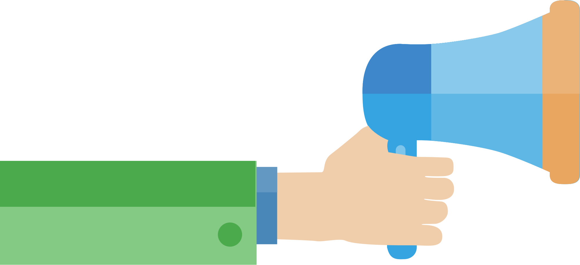 Hand with a long arm holding a megaphone. Used for Call to action on a web page. Hand mit langem Arm und Megaphone, benutzt als call to action-Icon auf Webseiten.