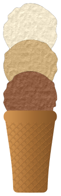 triple decker hard serve ice cream cone - vanilla, coffee, chocolate