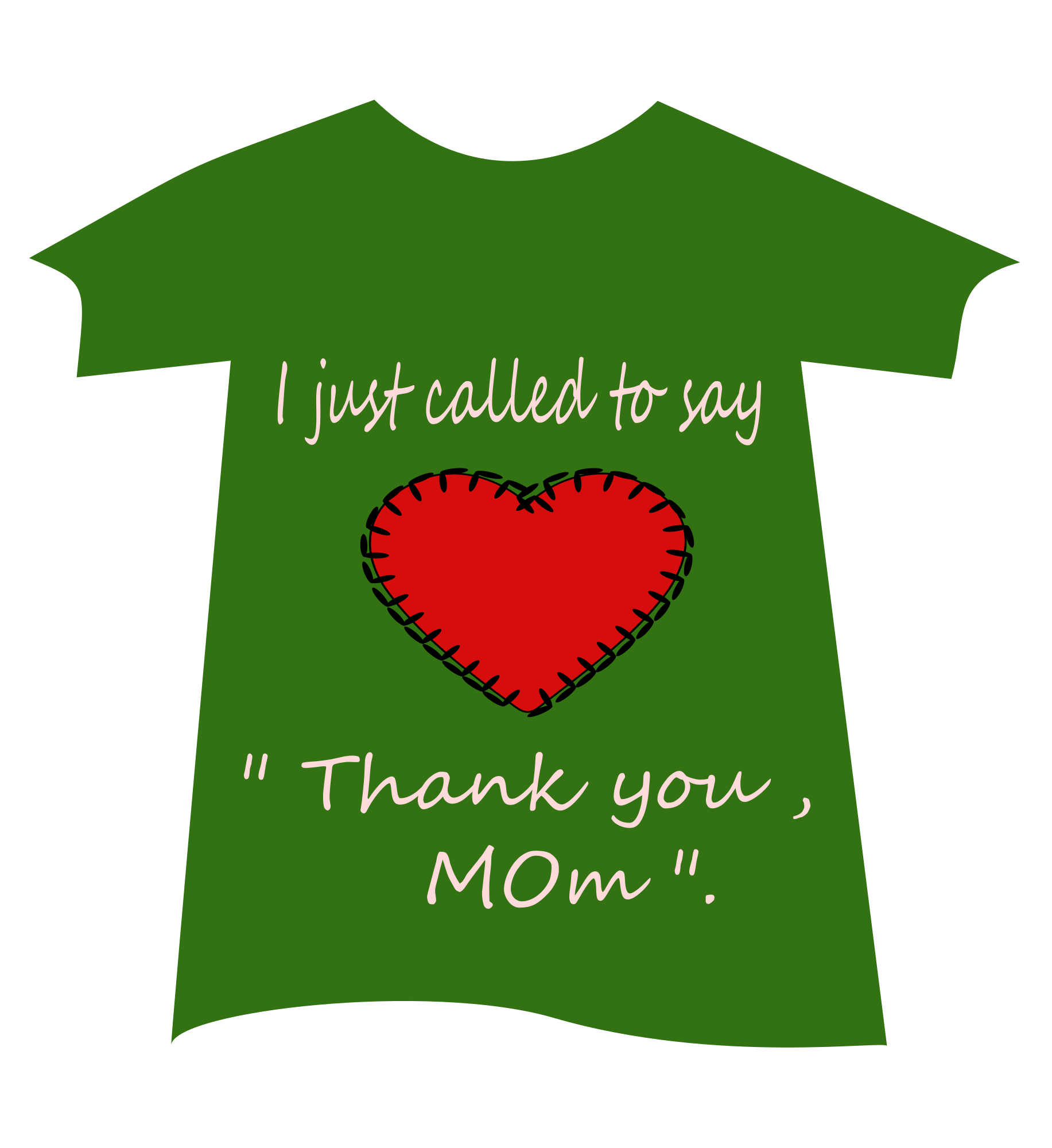 This Tshirt is in green and has the words read "I just called to say 'Thank you,Mom'" and a heart-shaped design in red.