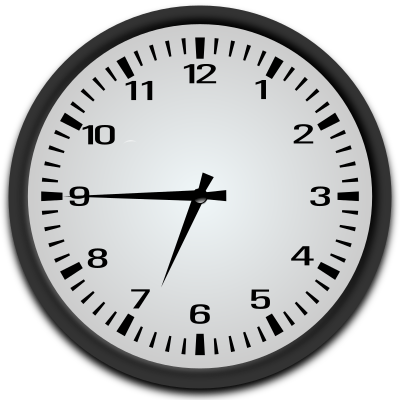 - 6 forty five 6:45 analog clock quarter to 7 quarter to 7 o'clock quarter to seven time