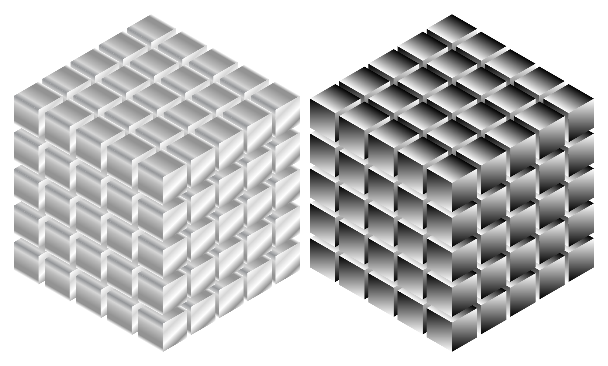 A pair of metallic-looking cubes.