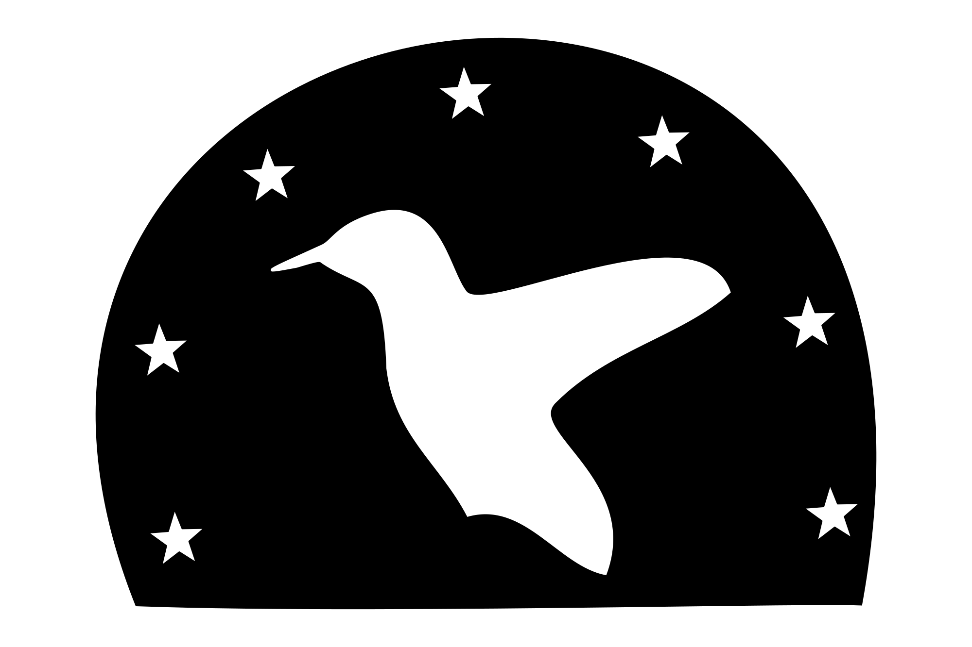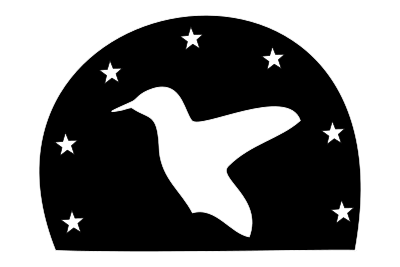 The image is a silhouette of a hummingbird and seven stars.