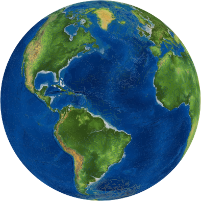 A physical map of Earth projected onto a sphere aka globe.