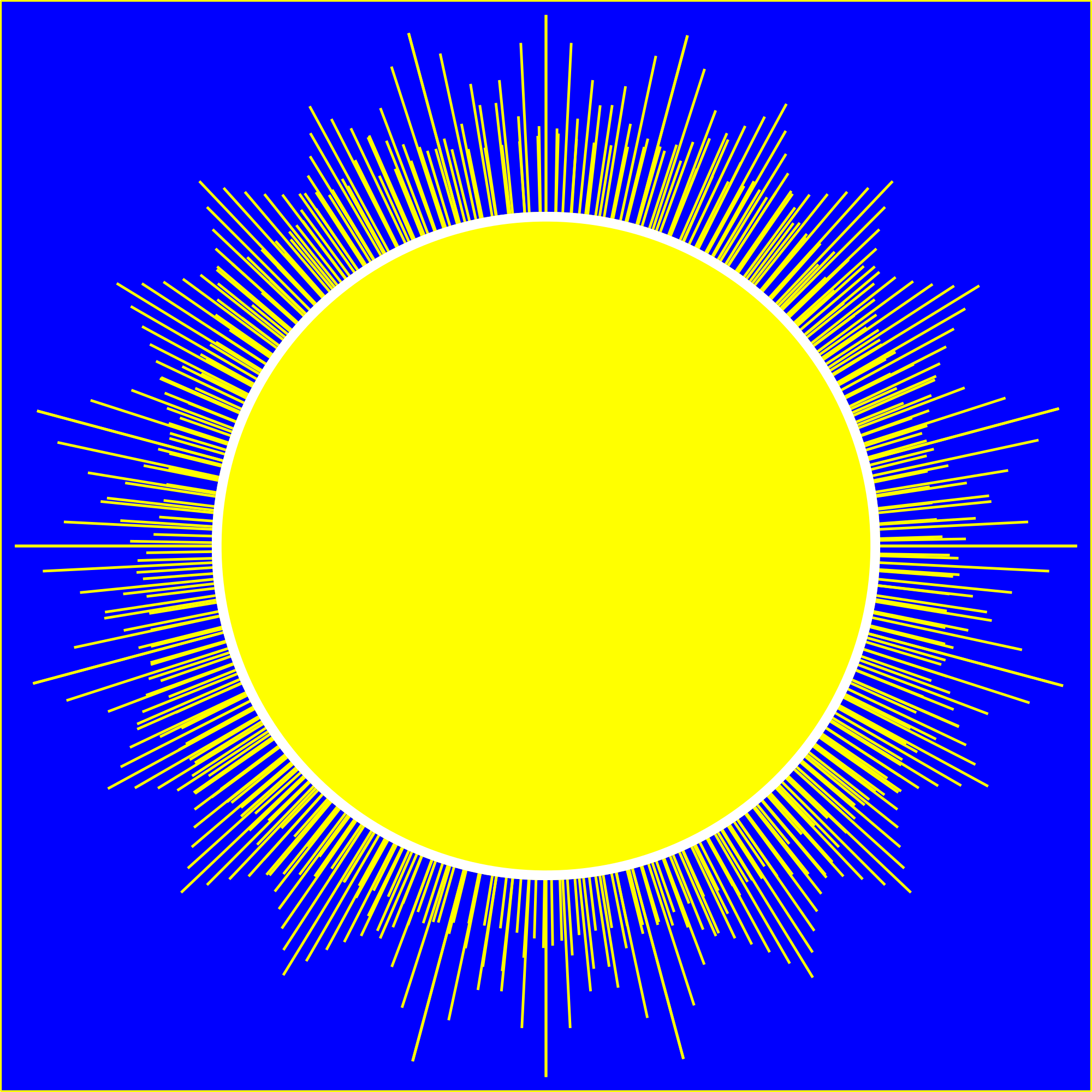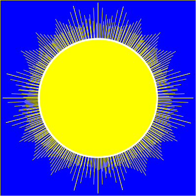 Sun on a blue-sky background with radiating lines surrounding the center sphere