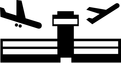 An airport in black and white.