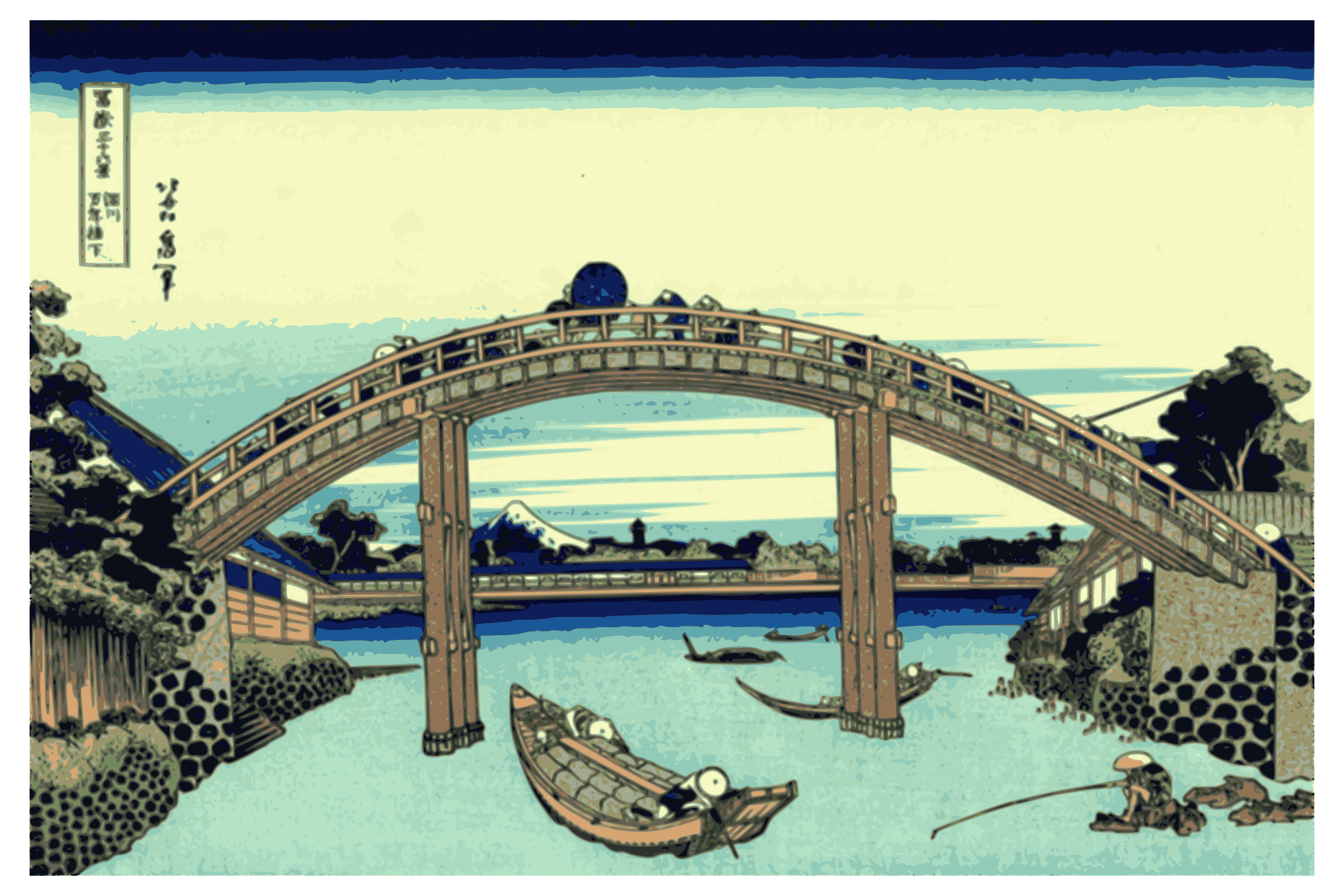 - 36 Fuji Fuji-san Fujisan Fukagawa Hokusai Katsushika Mount Fuji Print edo fugaku mannen-bashi remix+218885 ukiyo-e woodblock-print woodcut yamachem2