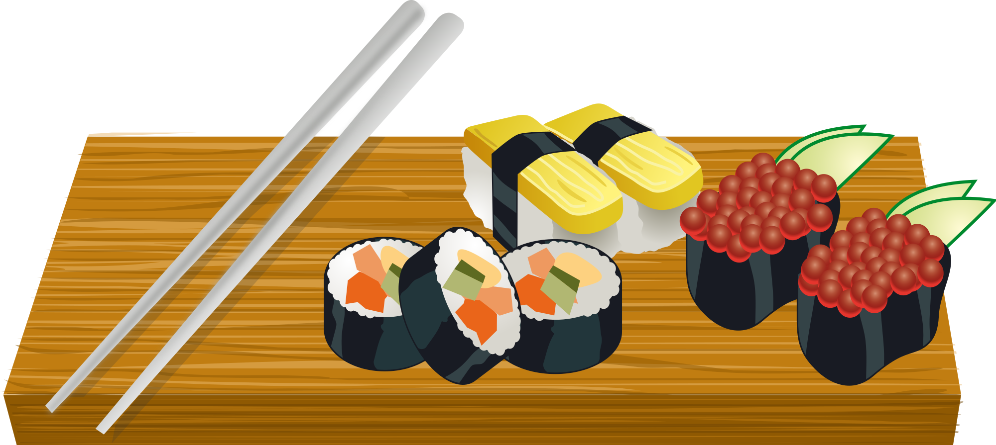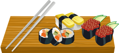 This is totally not my work. I just thought that the sushi looked good on a board, so I remixed several clipart images to achieve that. That's the way they do it at fancy restaurants. Sushi sounds like a good idea of something to pickup soon. Oooh!