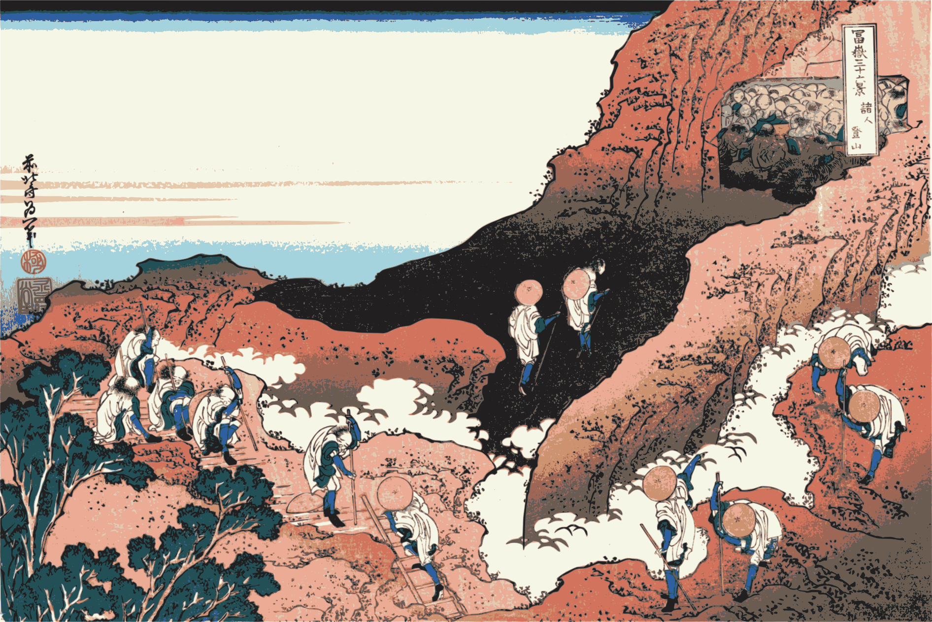 The original image is seen here: http://ja.wikipedia.org/wiki/%E5%AF%8C%E5%B6%BD%E4%B8%89%E5%8D%81%E5%85%AD%E6%99%AF#/media/File:Climbing_on_Mt._Fuji.jpg