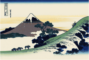 Thirty-six Views of Mount Fuji (富嶽三十六景 Fugaku Sanjūrokkei) is a series of landscape prints created by the Japanese ukiyo-e artist Hokusai (1760?1849). The series depicts Mount Fuji from different locations and in various seasons and weather conditions. The original thirty-six prints were so popular that Hokusai expanded the series by ten.