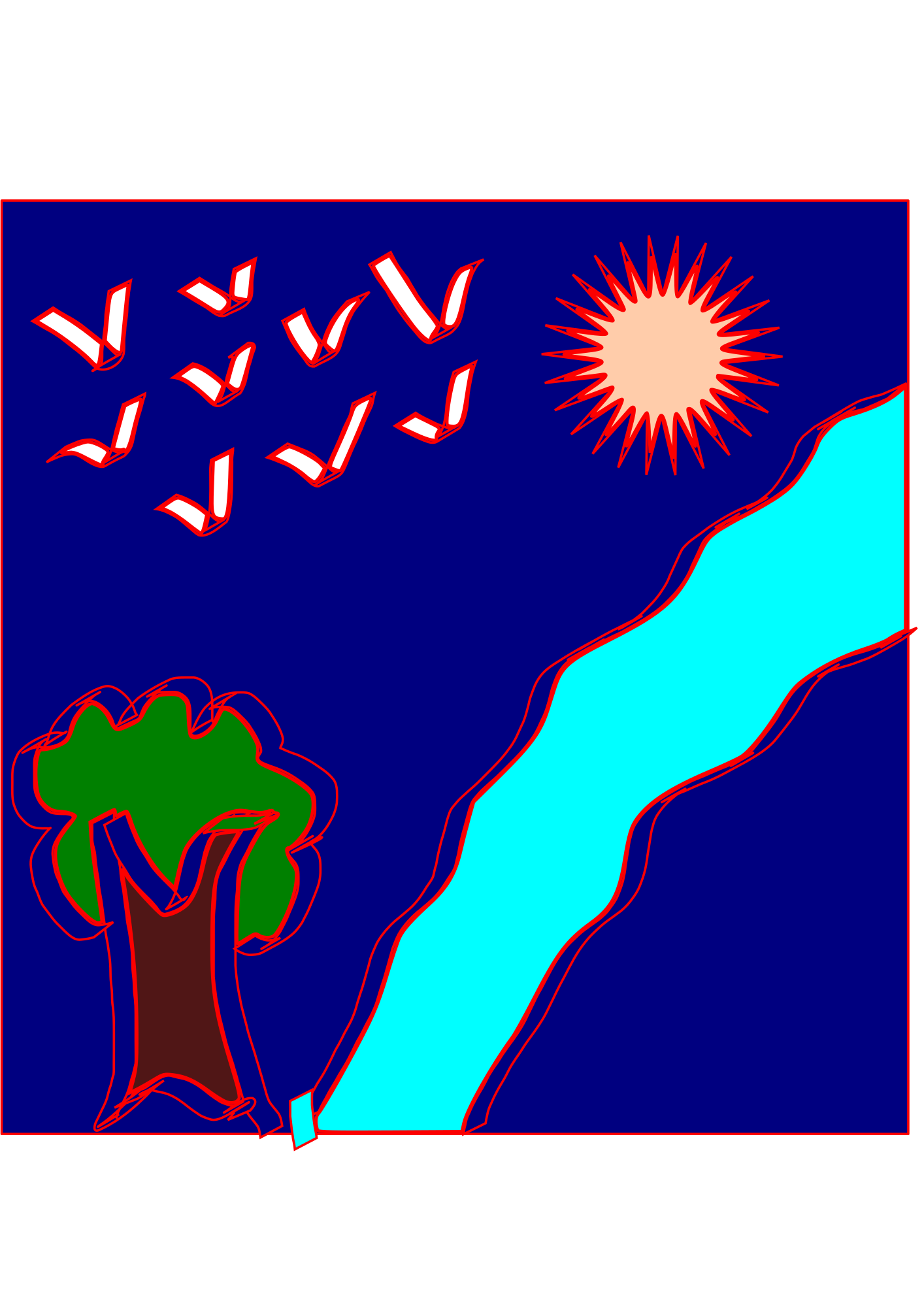 school works trees birds water fall