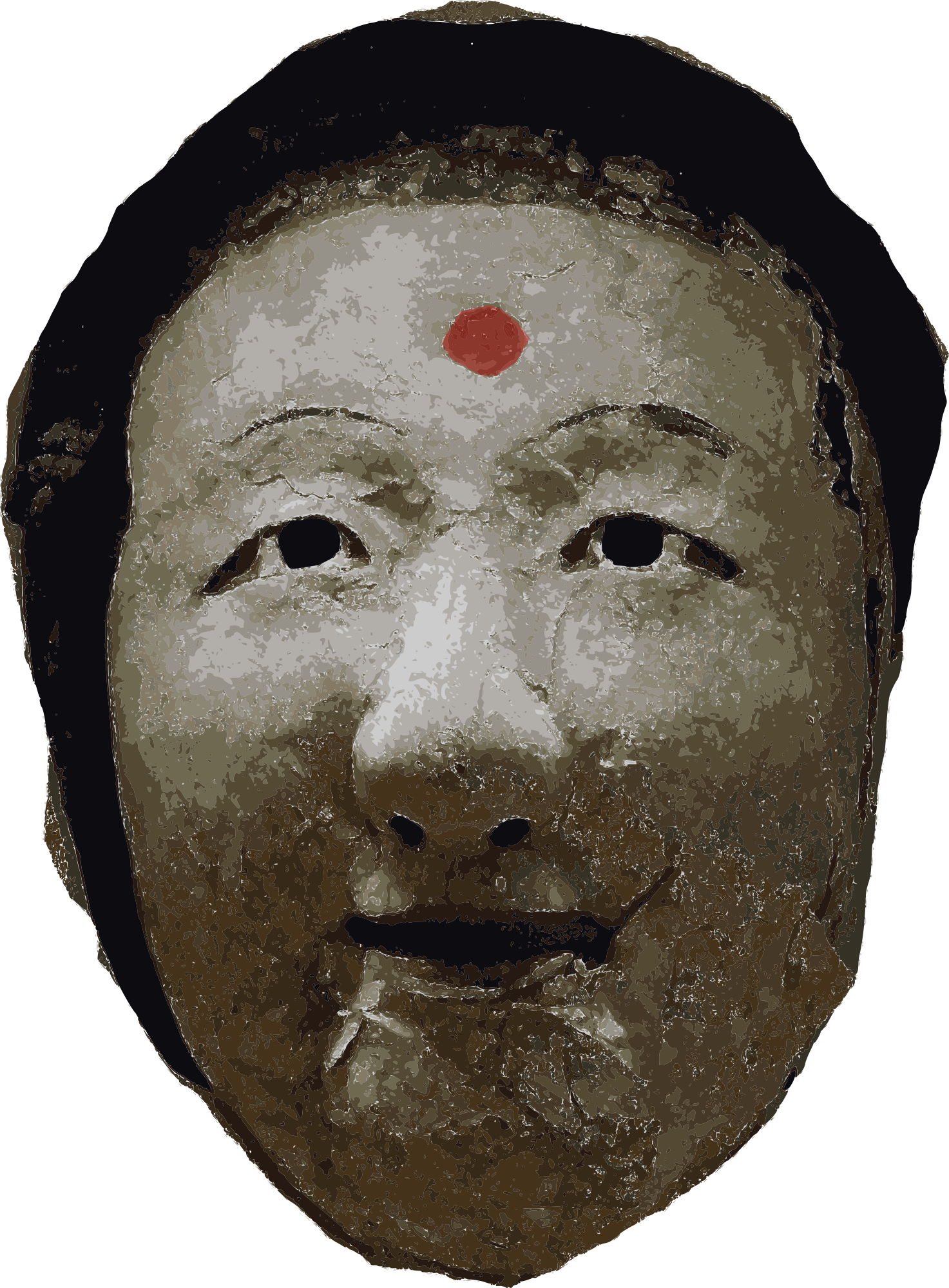I was struggling for a symbol to represent the traditional Korean Shamanistic beliefs (slightly similar to Japanese Shinto) and I found this public domain image of a mask provided by user Vassil (on Wikimedia) I synthesized it here in the hopes of having something to represent this belief system.