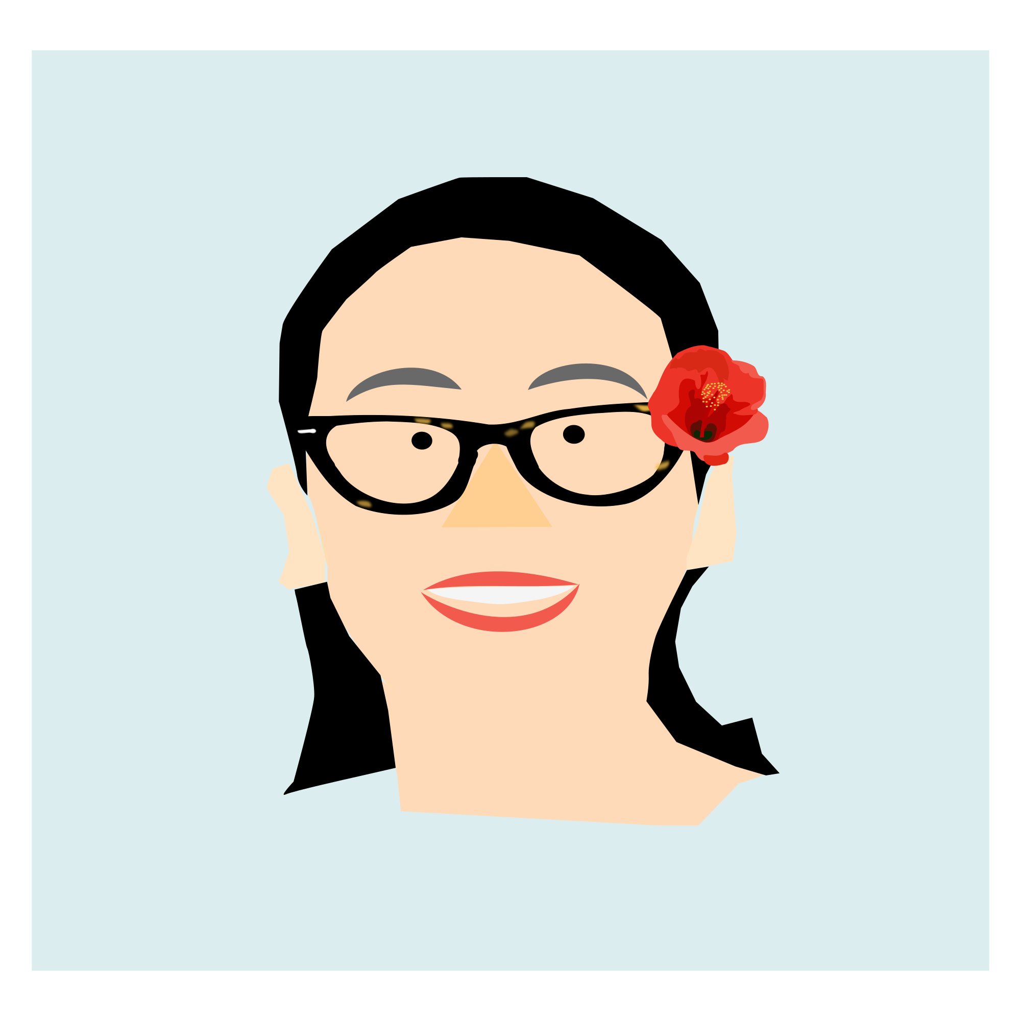 The image of a lady who is wearing a flower of hibiscus as a hair accessory.