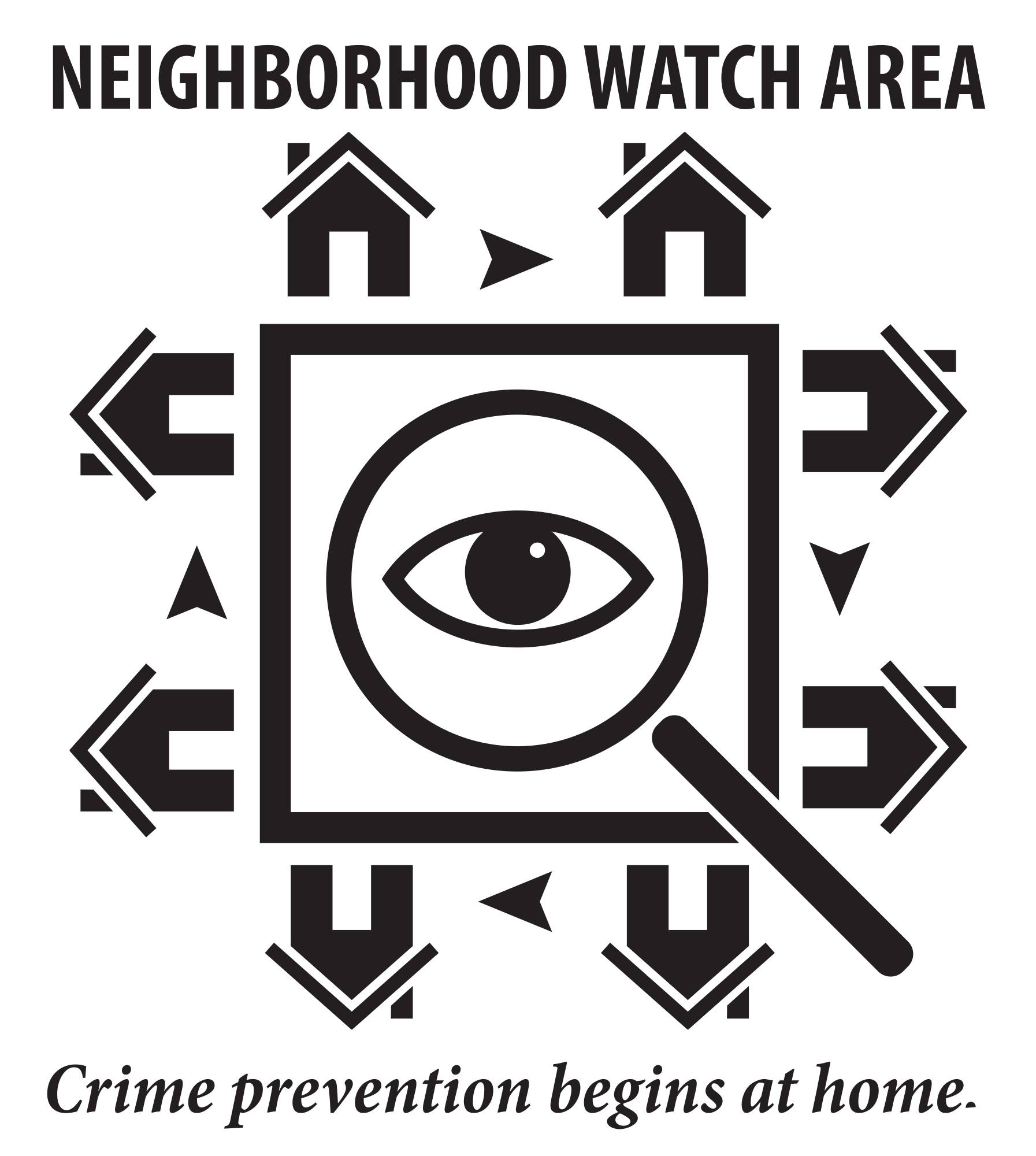 In creating a graphic for a neighborhood watch group I searched and found nothing I thought was very attractive or appropriate -- a graphic that said it all in one glance. So, I created my own using symbols familiar to anyone living in the 21st century.