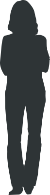 This is a long haired woman in throusers as a silhouette.