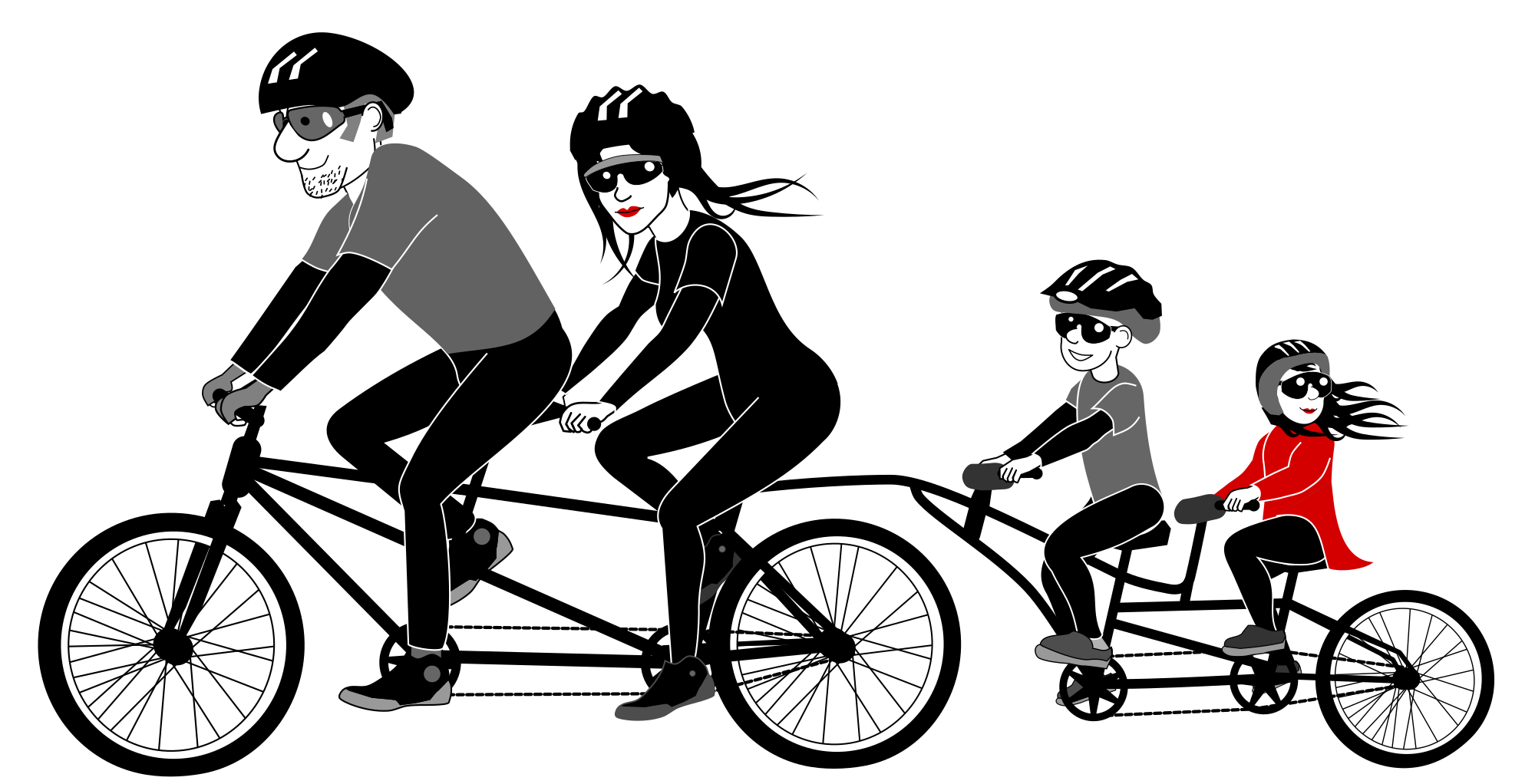 Family riding tandem bicycle