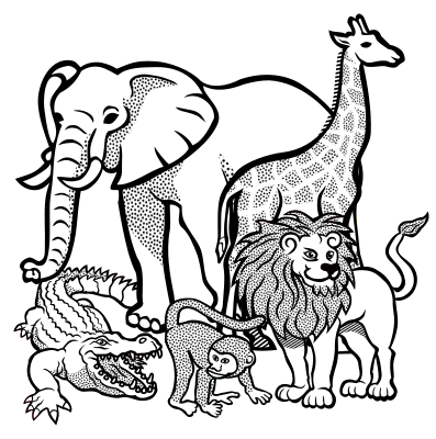 african line art animals