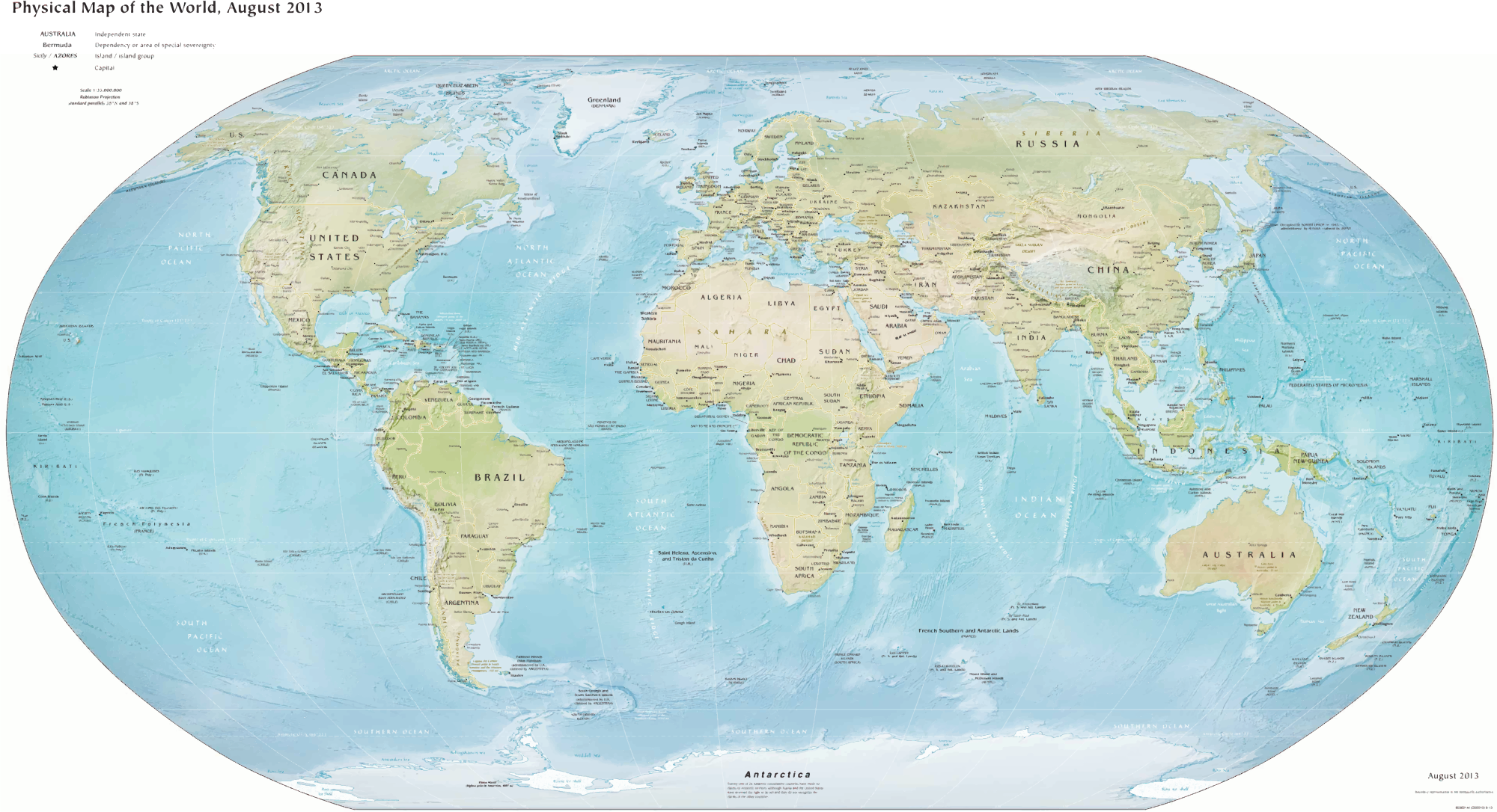 Physical Map Of The World circa 2013.
