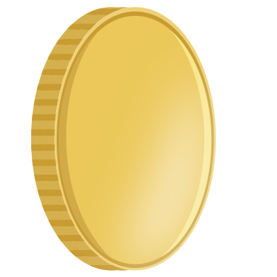 A shiny gold coin. Part of a set of 6 that can be used to do a spinning coin animation.