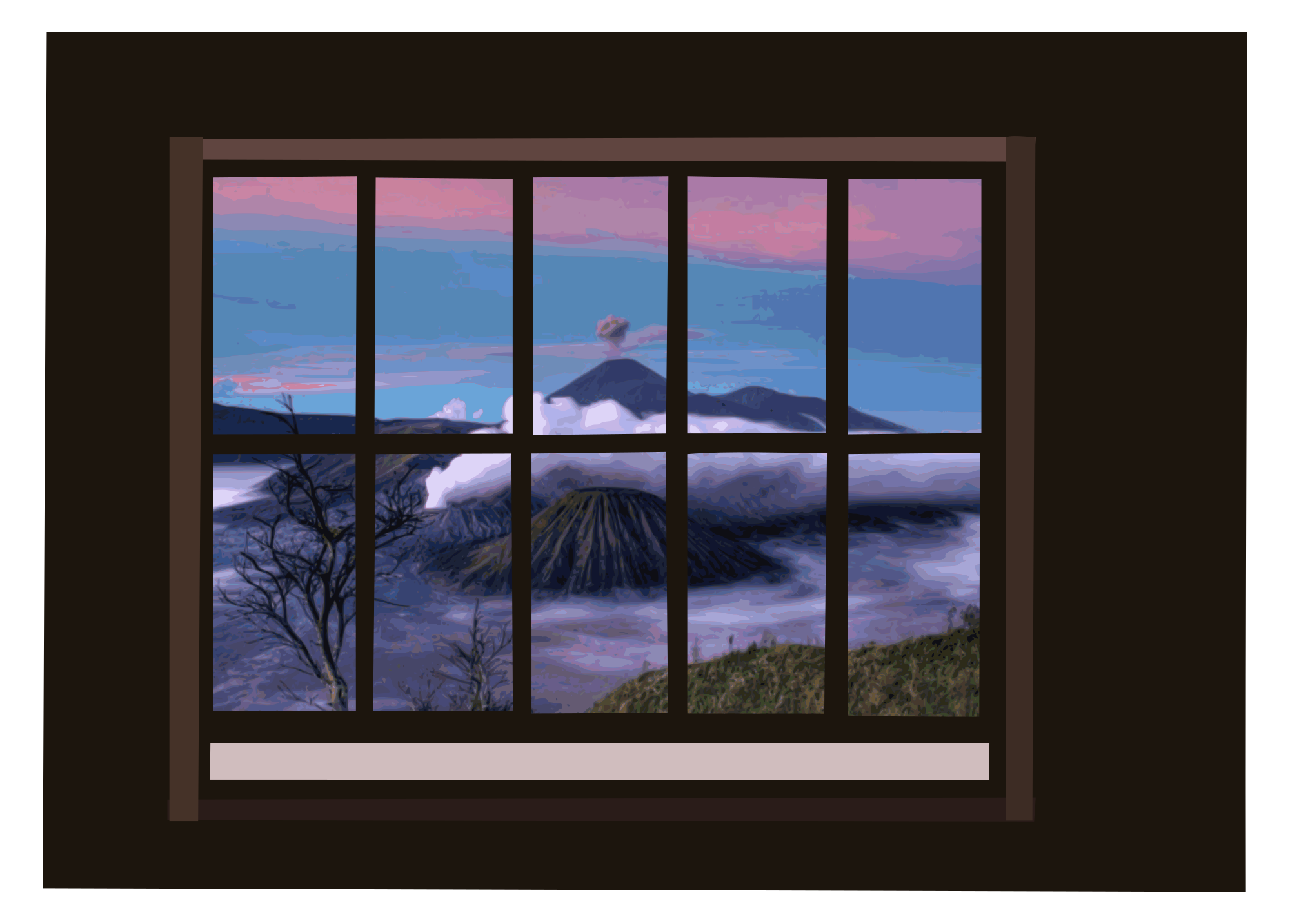 - frame landscape lattice mountain mountain-view remix+220945 window window view yamachem