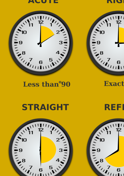 Types of angles depicted using clocks
