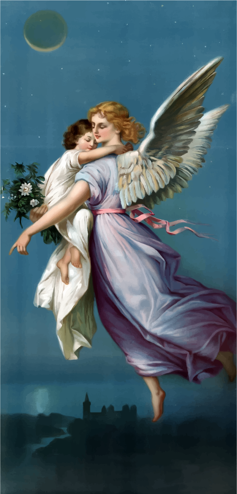 - Angel angels Child Female Girl Illustration Landscape Night Non-Human Beings Semi-Realistic People Vintage Wings