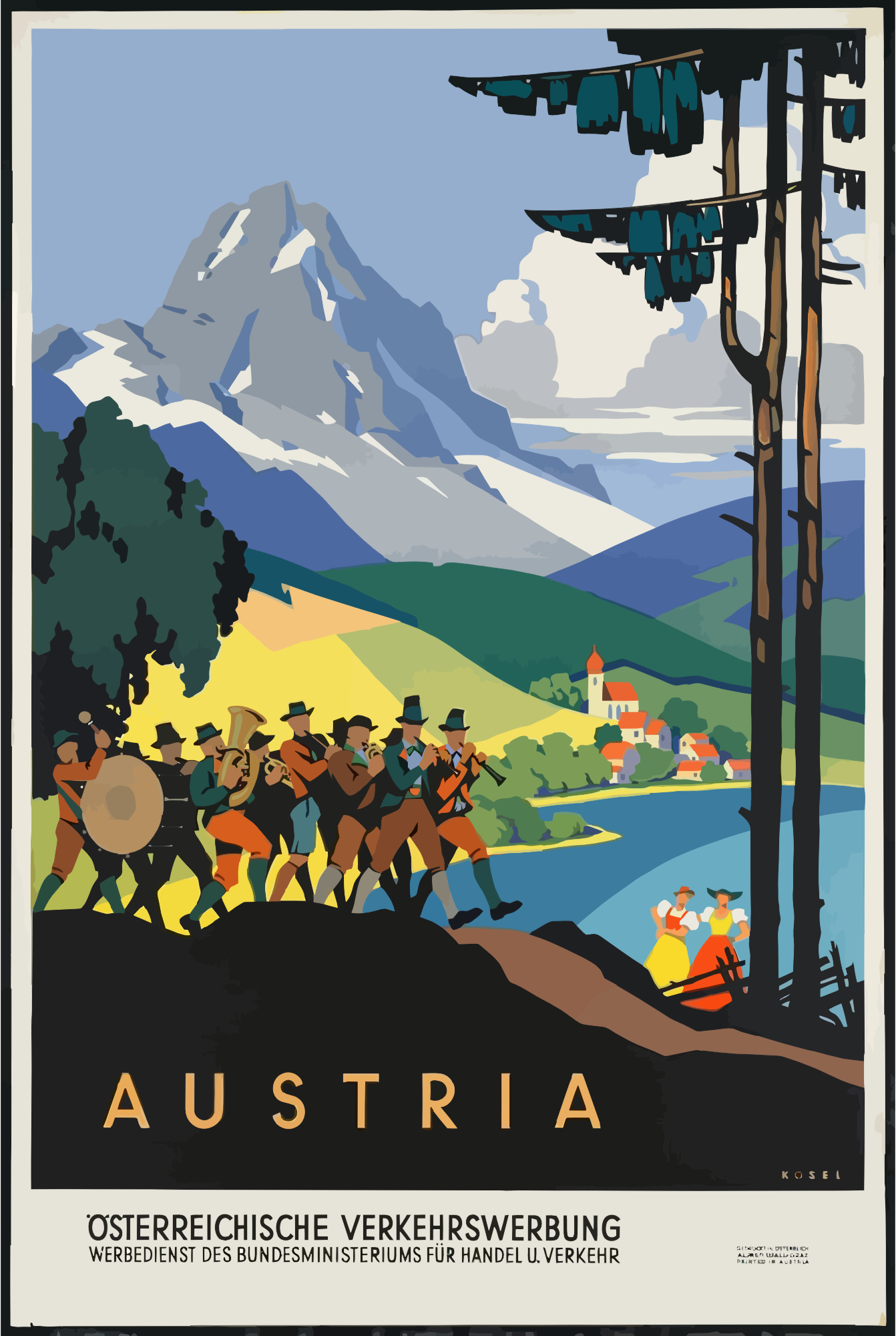 Vintage Travel Poster Austria from a pd image.