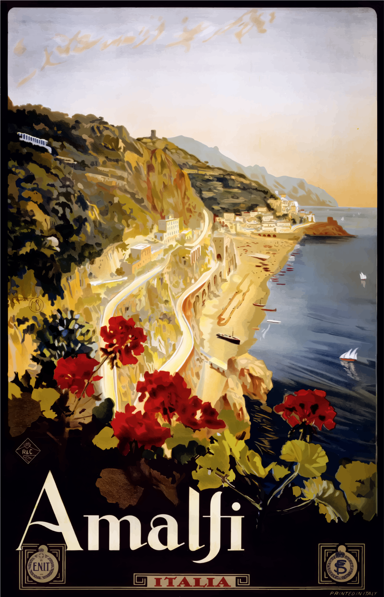Vintage Travel Poster Amalfi Italy from a pd image.