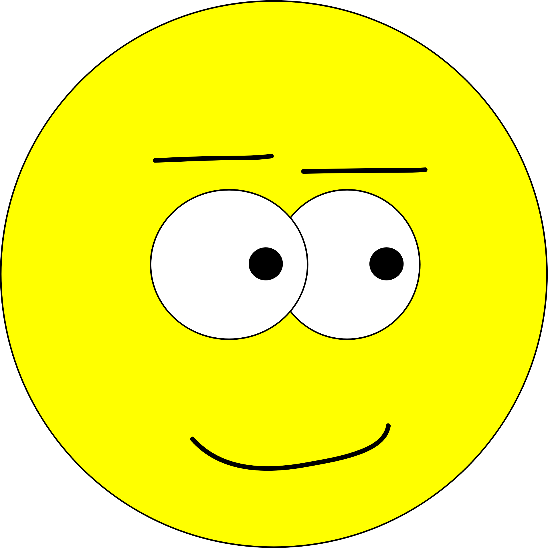 Yellow face with a pleased expression.