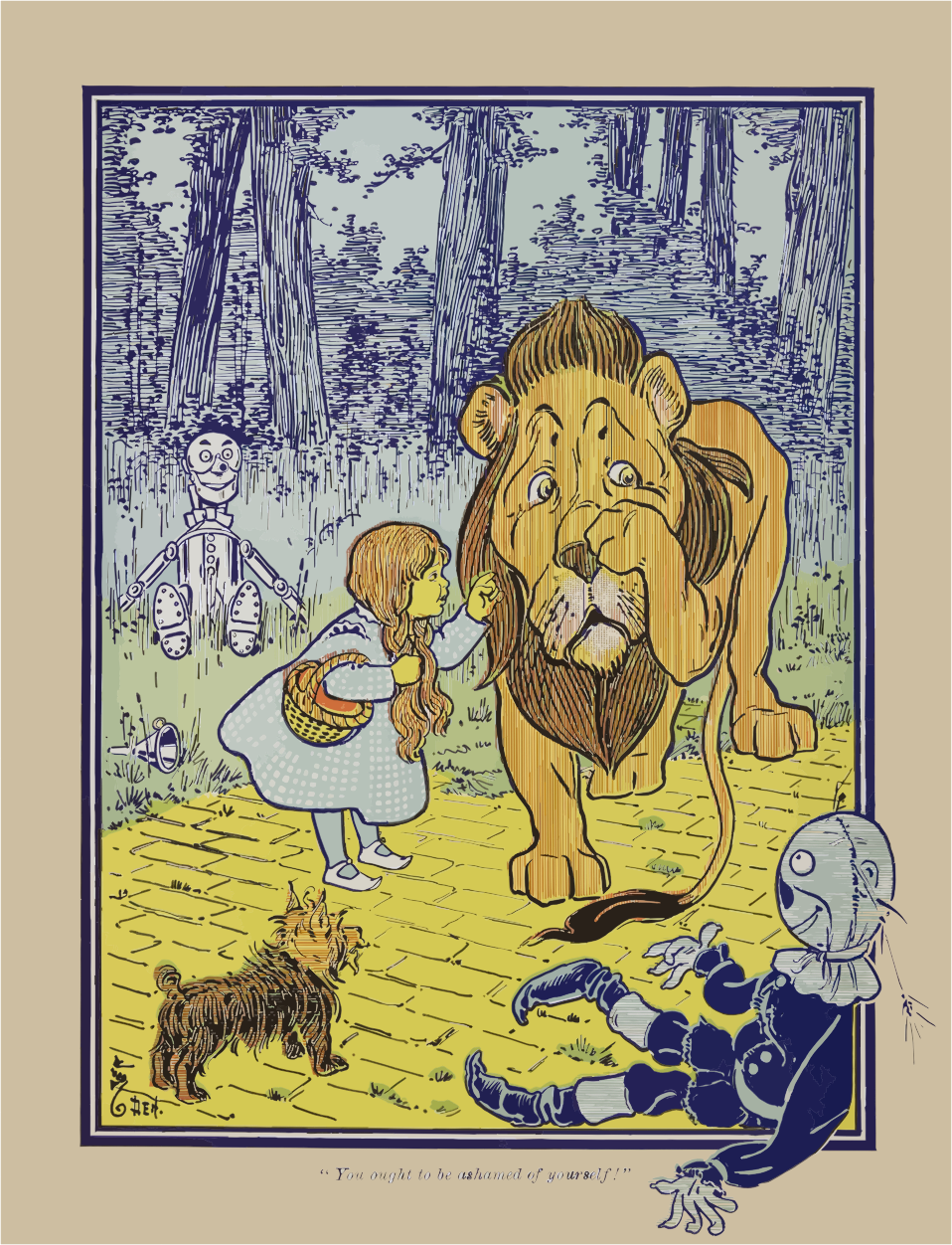 - Characters Cowardly Lion Dog Dorothy Illustration Literature Scarecrow Tin Man Toto Vintage Wizard Of Oz Yellow Brick Road