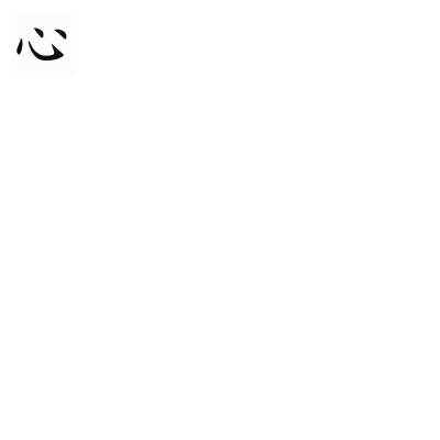 An animation which displays the srokeorder of the kanji "心"