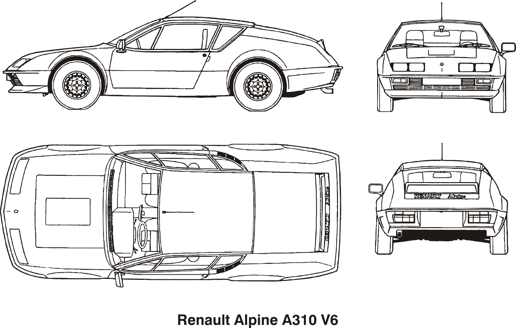 historical Renault sport car, technical drawing vector