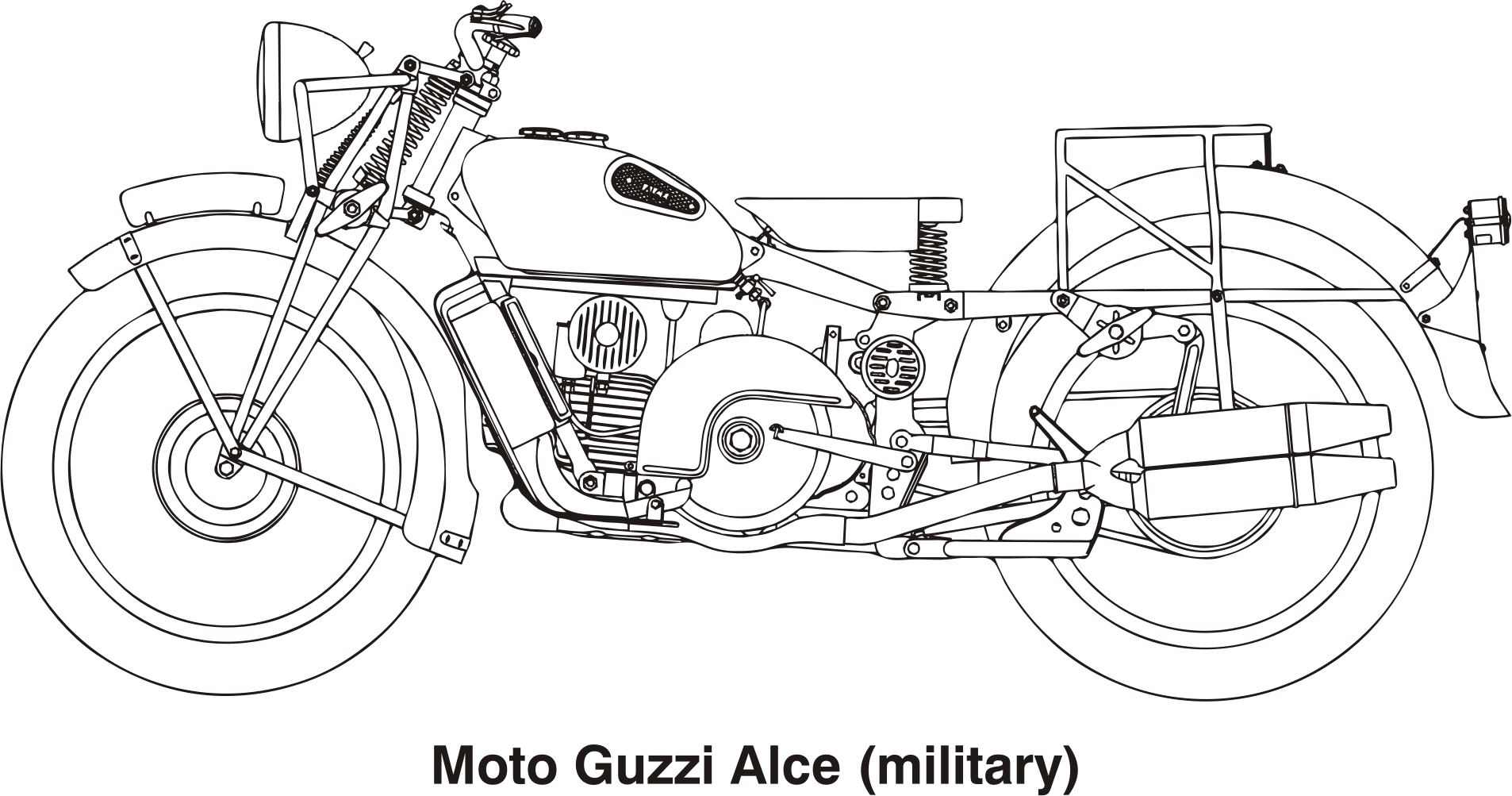 historical Moto Guzzi military motorcycle, technical drawing vector