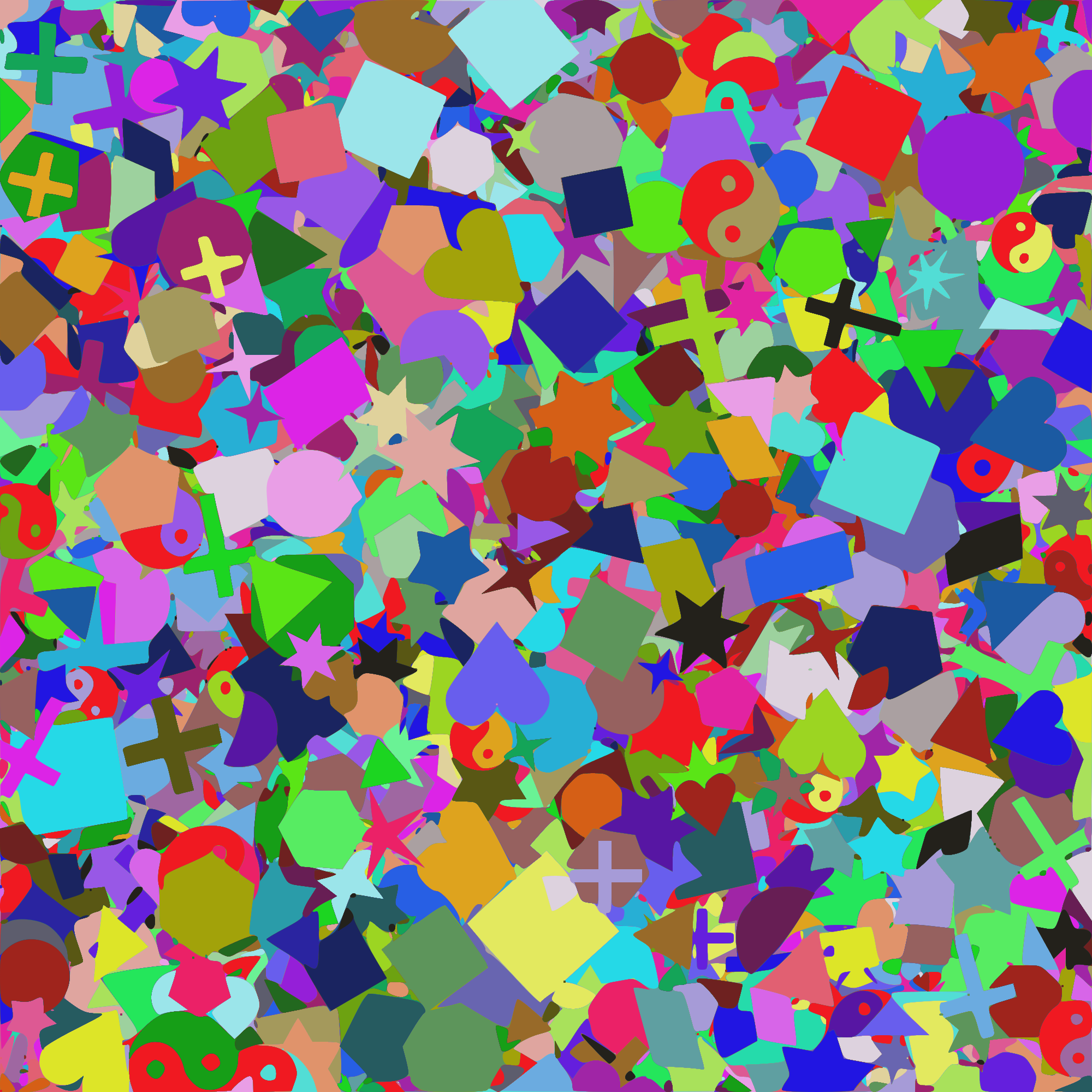 A random collection of shapes of random colours and random sizes in random positions - it's random.