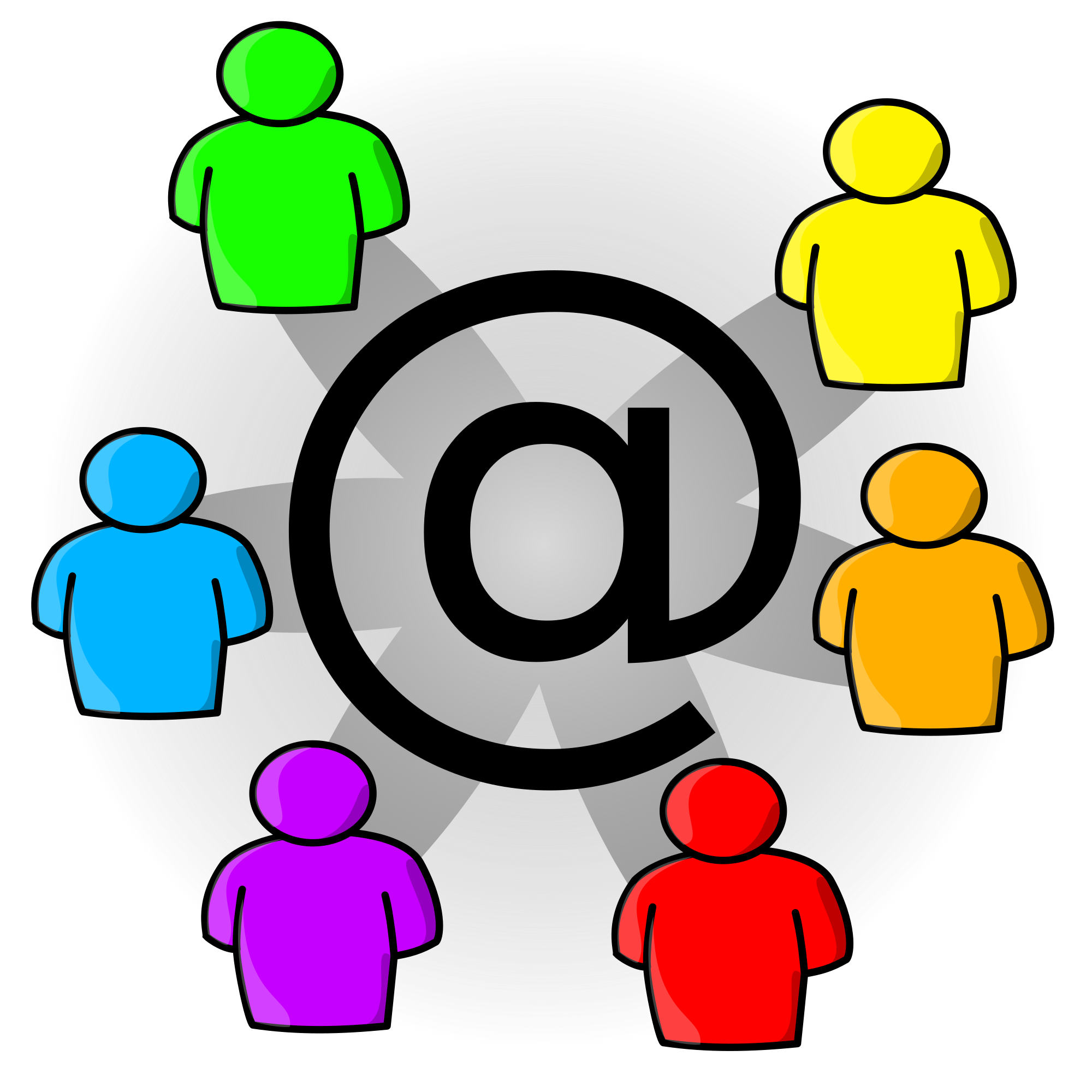 Icon for representation of mailing lists. You see some abstract people connected to an "@"-character in the middle.