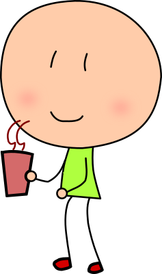 cartoon/stick-man style man with coffee