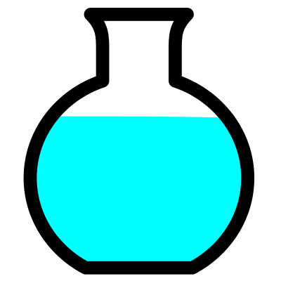 A round flask with cyan liquid.