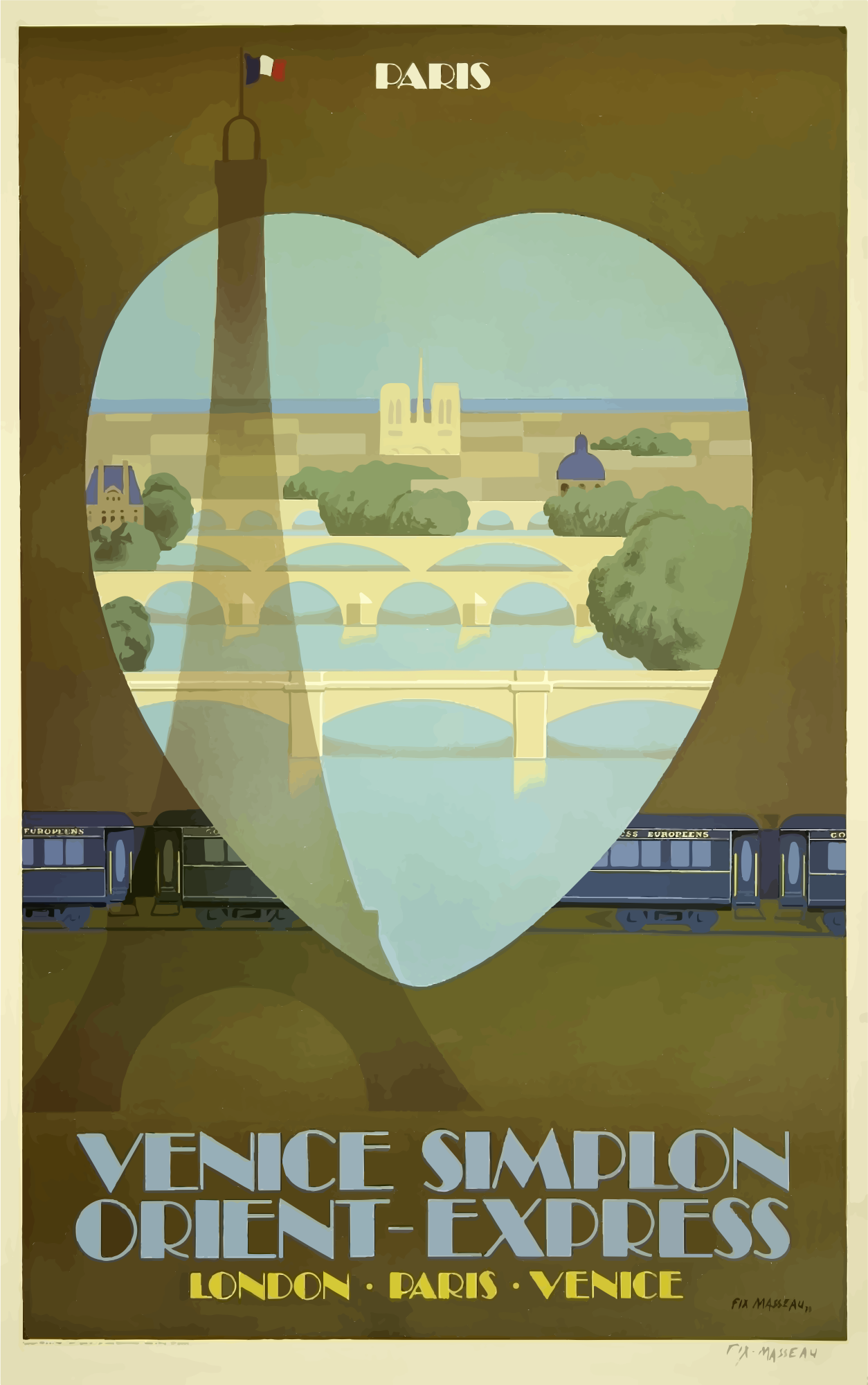 Vintage Travel Poster Paris France Orient Express