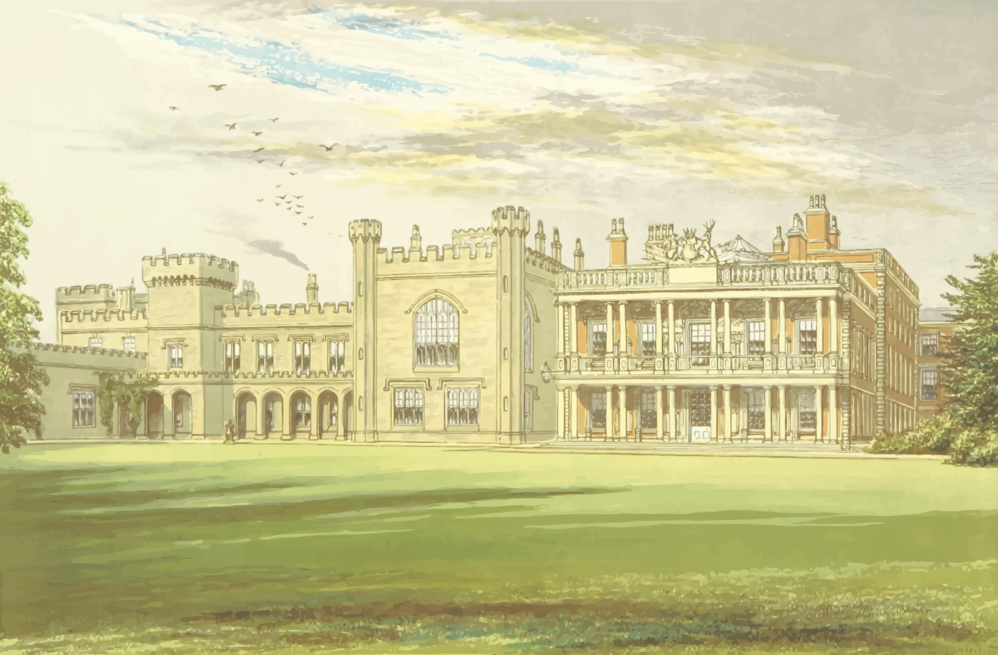 From a drawing in 'The Ancestral Homes of Britain; containing examples of its noblest castles, halls, and mansions', Francis Morris, 1868.
