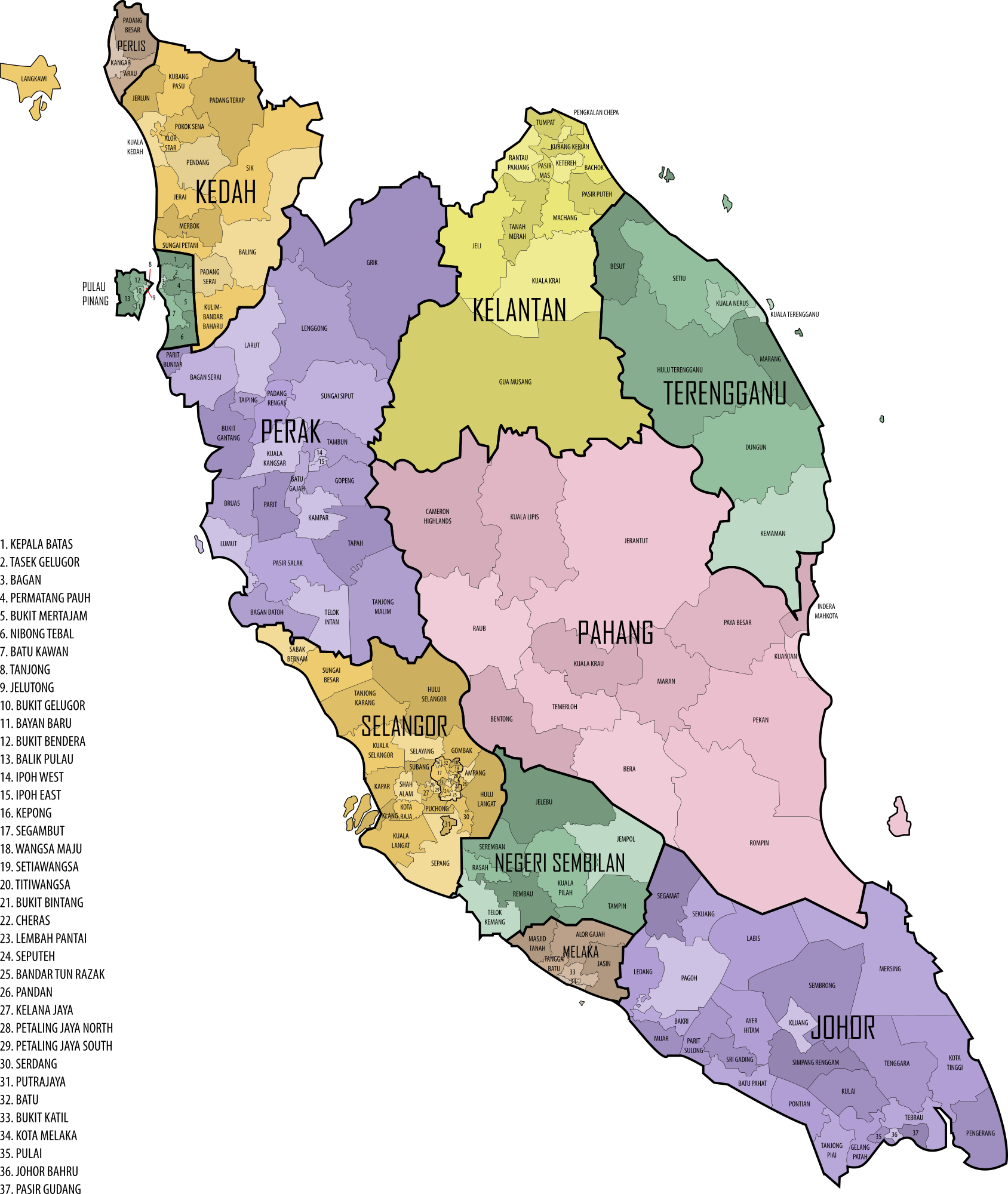 Malaysian Parliament Constituencies, 2015 (Peninsular Malaysia)