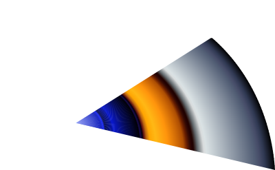 A 45° turn in a golden ratio logarythmic spiral, with a gradient fill.