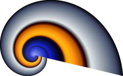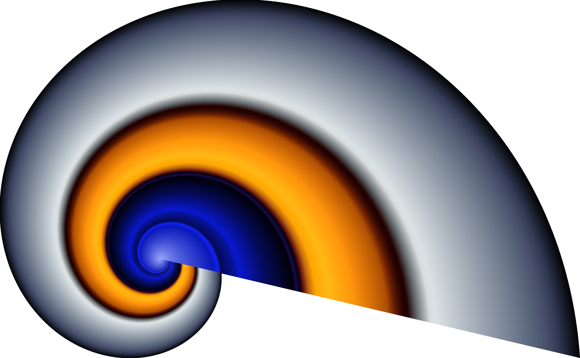 A full turn in a golden ratio logarythmic spiral. Parts of 1° turns with linear gradient fills are stacked next to each other.