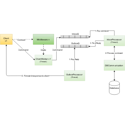 flowchart about clients and databases