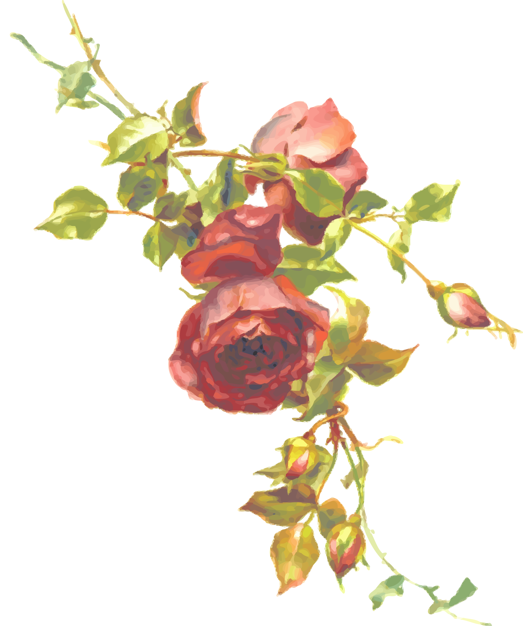 As rose 6, but with the background removed. From a drawing in 'Rose Leaves', 1889.