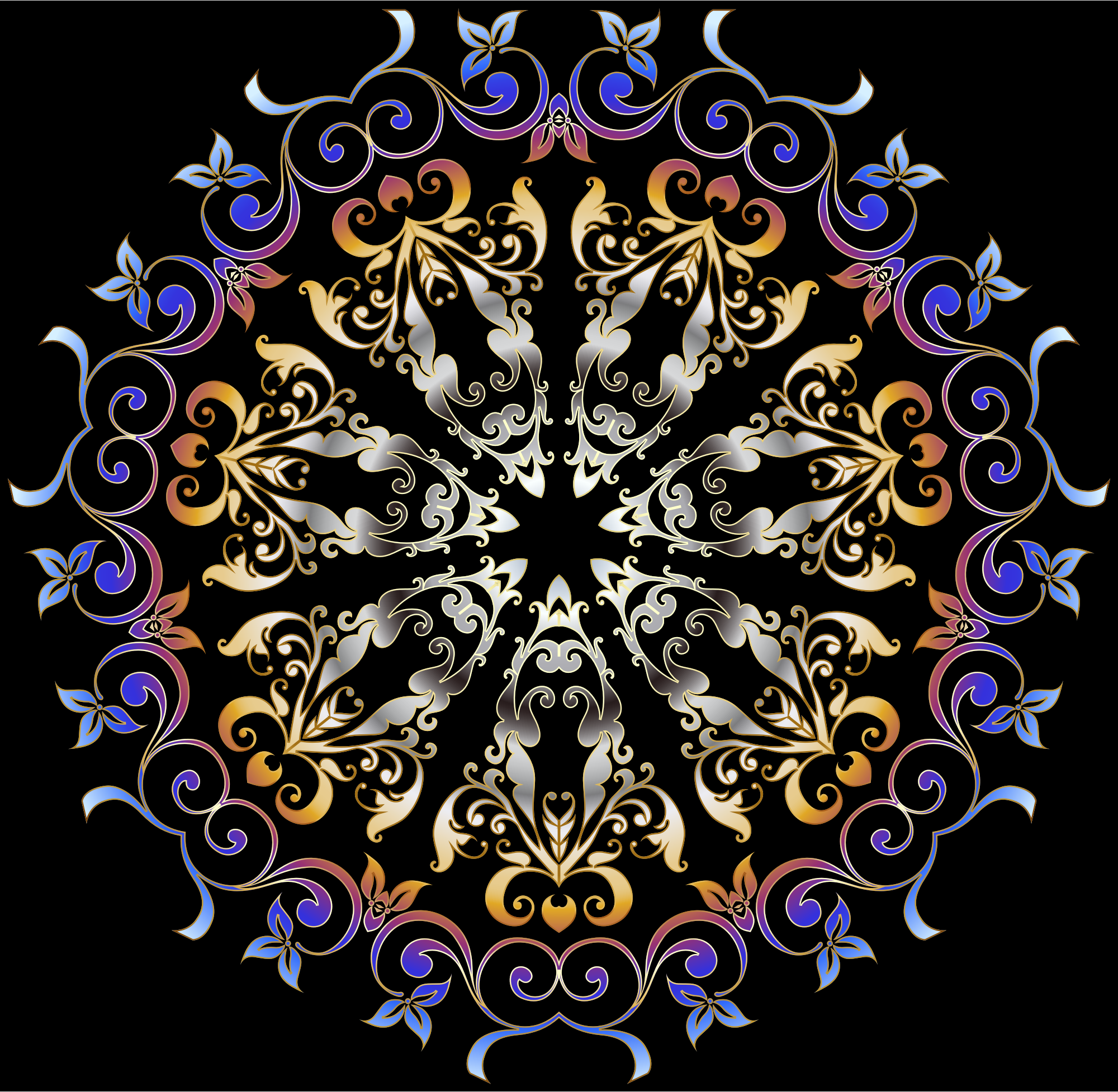 Colorful Floral Design with a black background.
