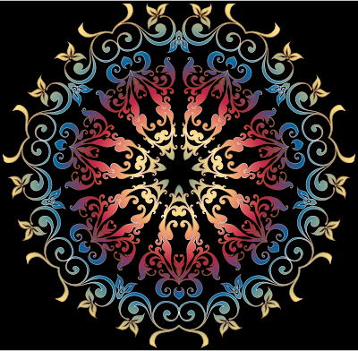 Colorful Floral Design with a black background.