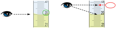 Skala richtig ablesen (gelbe Flüssigkeit) - Skala von Bürette