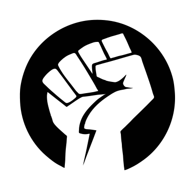 Black and white raised fist icon
