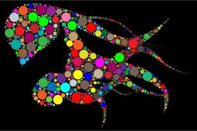 Woman With Colorful Flowing Circles Hair With Black Background