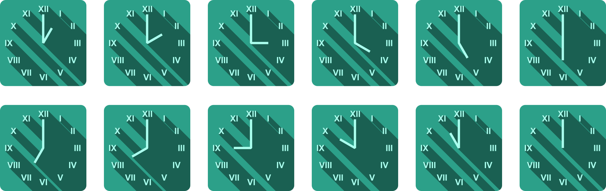 Some clocks, with shadows.